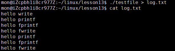 为什么通过这两种方式,就能通过cat log.txt打印出文件中的内容?