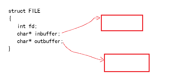 在这个结构体中分别有两个指针分别指向了输入缓冲区和输出缓冲区,也就是内存中的两块空间,不过这两块空间不是你启动进程就立刻给你分配的,而是你打开输入输出文件时才会在内存中开辟相应的空间。