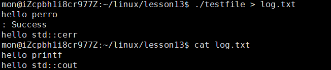 我们通过重定向的操作只是修改了1号标识符的指向,但是2号标识符并没有被改变,依旧是指向显示器文件的,所以当第一步的操作执行后,写入到显示器文件的就是perror和cerr的内容。