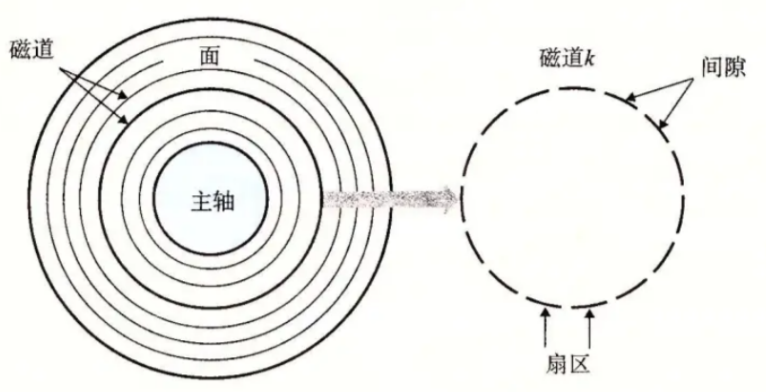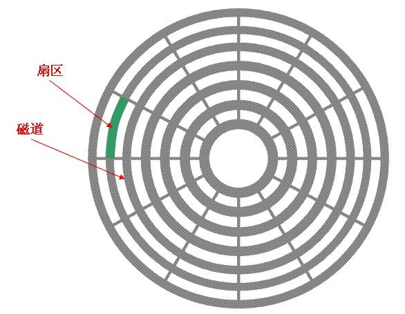 我们的重点还是磁盘和磁头,那么下面我们来具体看一下磁盘的平面结构: