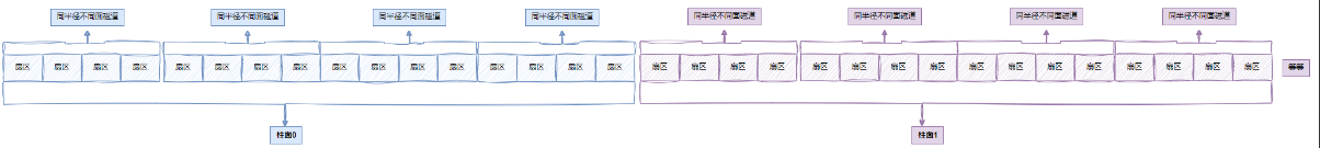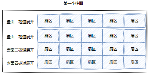 而柱面是由磁道构成的,那么我们把一个柱面展开来看:
