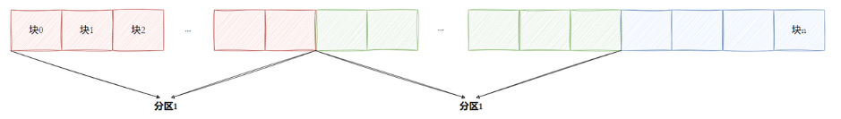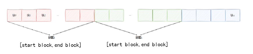 结构就如上图所示,每个区中都有不同数量的块,而我们就可以通过起始块的地址和终止块的地址来确定一个区的范围: