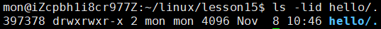 因为这个目录中还有" . "文件啊,这个文件就是目录文件的硬链接文件,它们文件名不同,但是指向的都是一个inode,所以此时的硬链接数就为2,我们再来看: