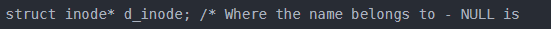 struct inode* d_inode; /* Where the name belongs to - NULL is