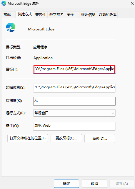 我们查看其属性,发现在目标这一栏中存的就是相应软件可执行文件的绝对路径的字符串,讲到这里相信大家就知道我想说什么了。