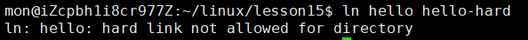 可以看到,这里不允许给hello进行硬链接,但是此时有人就会有疑问了:那上面的" . "和" .. "文件不就是hello的硬链接吗?linux自己可以进行硬链接,却不允许用户进行硬链接吗?