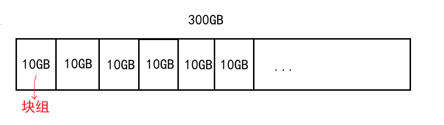 如上图所示,我们把一个300GB的分区给划分一下,一个块组就占10GB,这样就可以将300GB划分为30个块组,这样我们就把一个分区管理好转变为把一个块组给管理好,而块组这种数量也不是很多,容量也不是很大,管理起来就刚刚好。