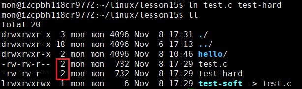 在文件前面的属性中,有一个值,当我们创建软链接文件时test.c的这个值并没有发生变化,但是当我们进行硬链接后,这个值就从1变为了2,那么此时想必大家对这个值很好奇,它是什么呢?