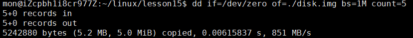 这第一步我们就需要先创建一个分区,如上图所示,这里我就创建了一个名为disk.img的分区,大小为5MB,通过结果我们也可以看到分区的大小确实为5MB。