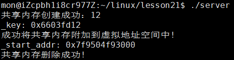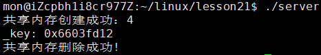 可以看到两个函数都成功执行,并且我们查看共享内存的状态,在没有执行删除函数之前是有我们所创建的共享内存的,而在执行删除函数之后,我们的共享内存就没有了,可见确实实现了删除共享内存的功能。