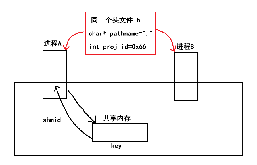 进程B一没有shmid,二没有key,它就根本找不到进程A所创建的共享内存,也就无法实现进程A和进程B之间的通信,哪有人就说了:让进程A传给进程B不就行了吗?