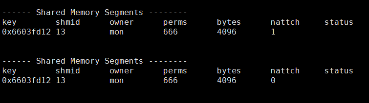 从上面我们就可以看到,ipcrm -m后面跟的并不是key而是shmid,因为这是对共享内存的具体操作。