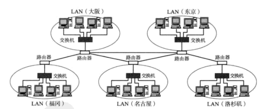 再到后来计算机的数量更多了,此时又出现了新的设备:交换机和路由器,这些计算机通过这些设备来完成协作,这种方式我们就叫做:局域网LAN。此时的技术就已经能支持不同地区的计算机之间的通信了。