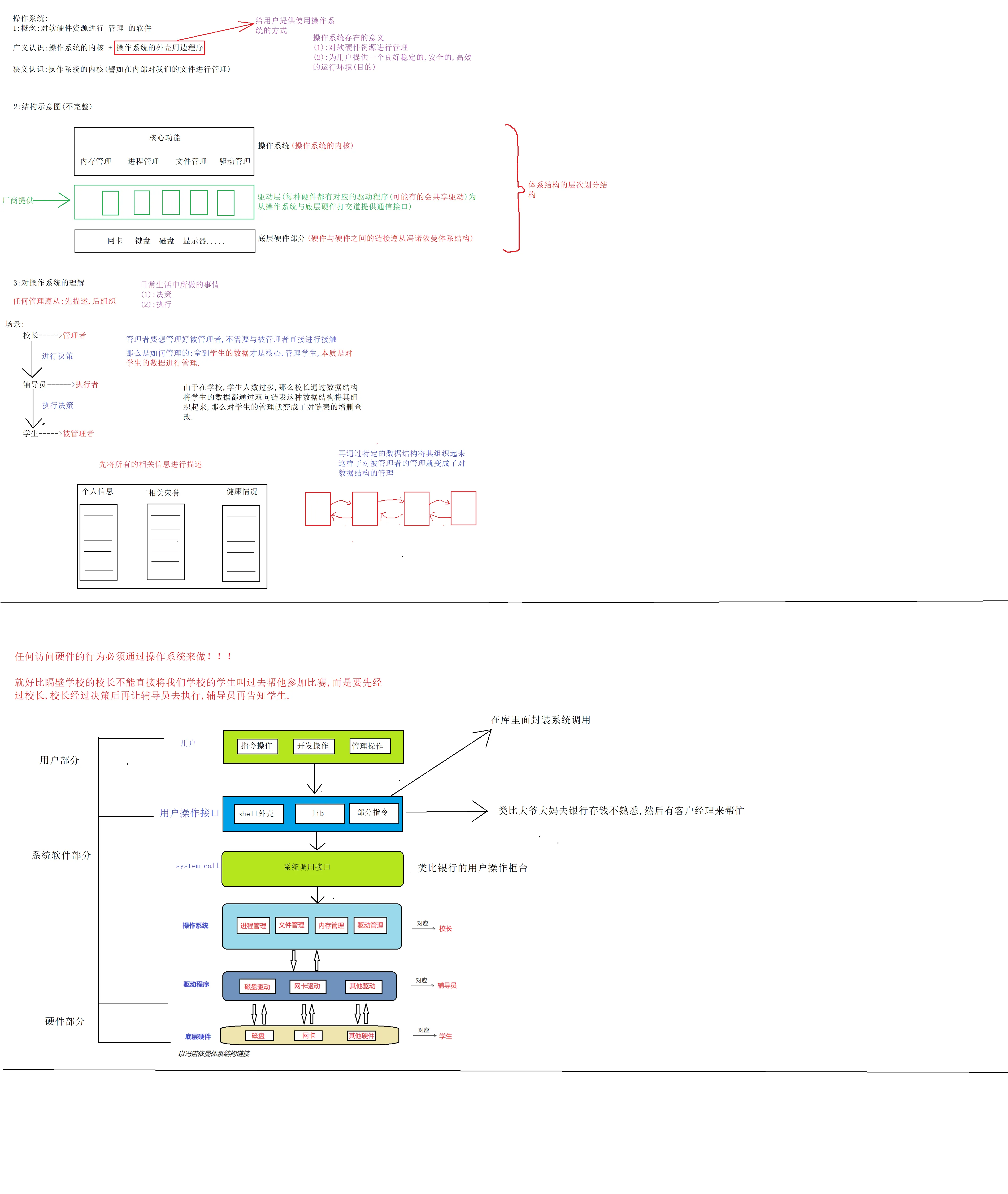 - 每个硬件设备都有其特定的功能,并能够在冯诺依曼体系下高效运行.然而,仅具备硬件功能还远远不够,因为硬件的操作需要明确的调控和协调.也就是说,何时执行何种功能,必须有一个统一的管理者来安排.