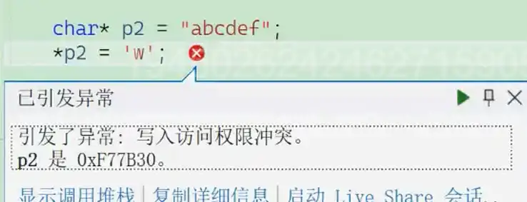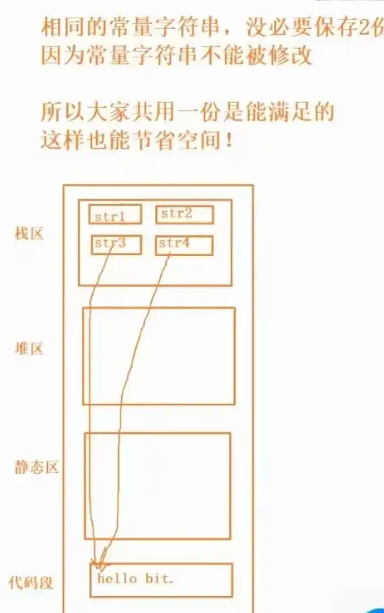 原因:子符串常量放在代码块,不在静态区、栈区和堆区(因为它们可以改的,而字符串常量不能改)