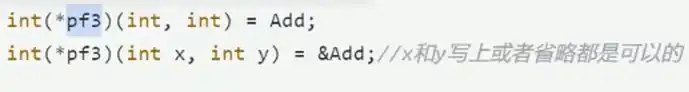去掉名字,int (*)(int,int)为函数指针类型,函数里的参数类型需要保持一致,形参的名字是可以干掉的(不用写,压根就不用)