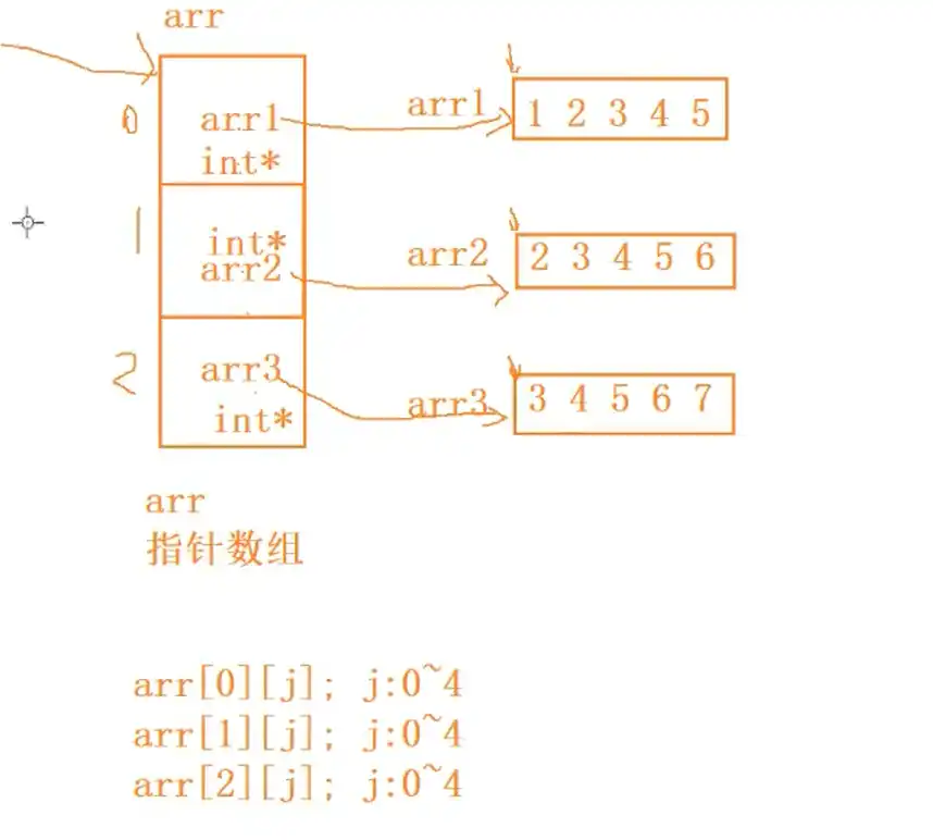 把二维数组的一行看成是一维数组组成,把每一个一维数组看成一个元素,二维数组每个元素是一维数组,首元素的地址就是第一行的地址,第一行的地址就是一维数组地址,类型是数组指针类型arr是第一行的地址,(arr+i)是每一行的地址,*(arr+i)是每一行的起始地址,而在二维数组中理解方法中arr[i]可以用来表示每一行起始地址,然后*(*(arr+i)+j)就可以表示arr[i][j]