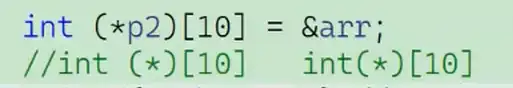 int (*p)[10]:把*p去掉,相当于把数组名去掉,剩下类型int[10],所以是指向数组的指针