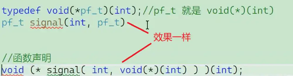 里面函数指针类型和强制类型转换非常重要,需要识别出来