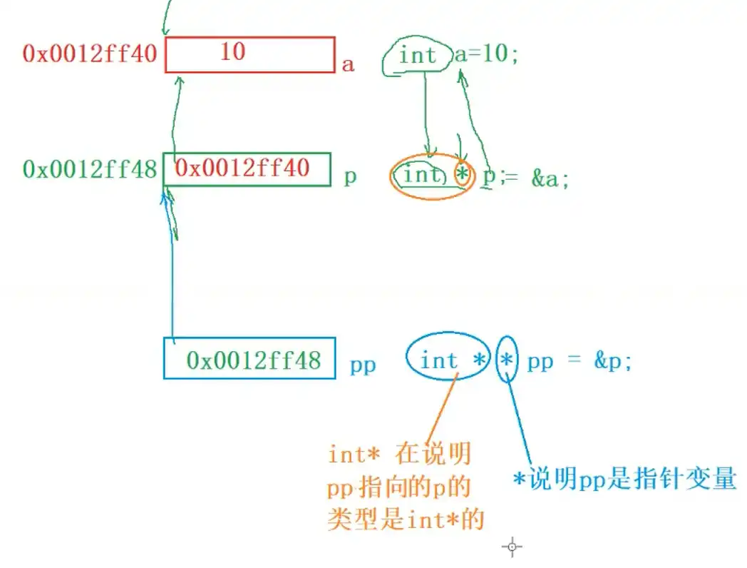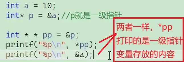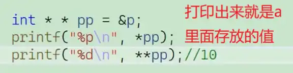 *pp指向的是p,那**pp指向的就是a,有间接访问的效果