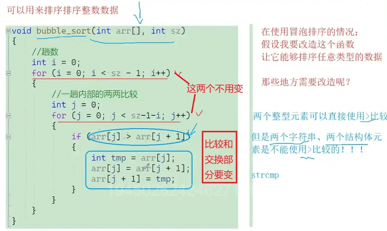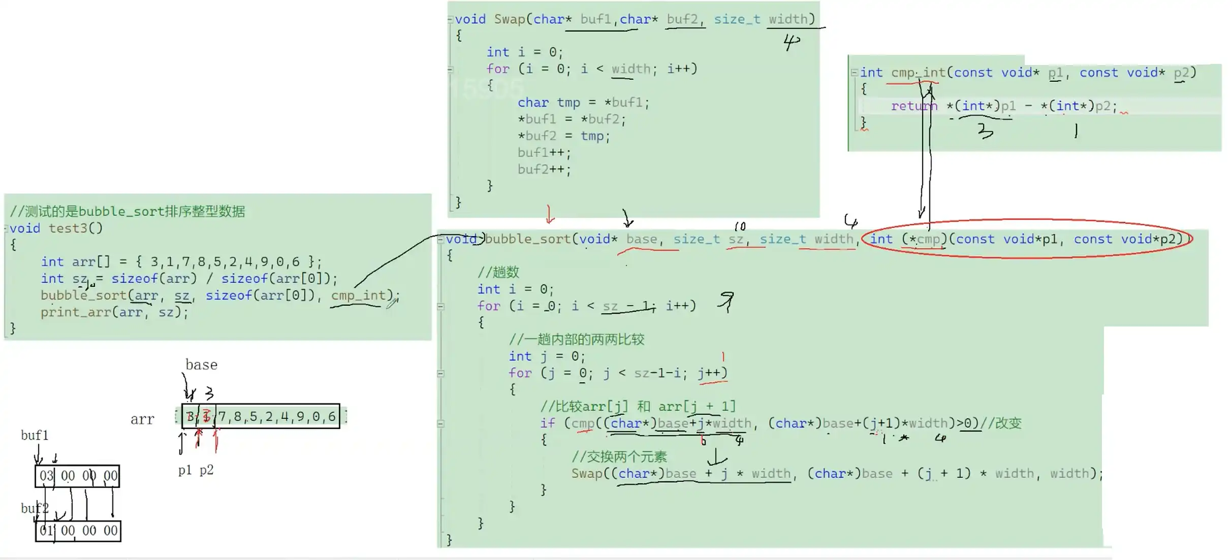 原来bubble函数中形参为int*,为了接收任何数据的地址,改成void*类型的1地址