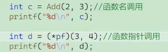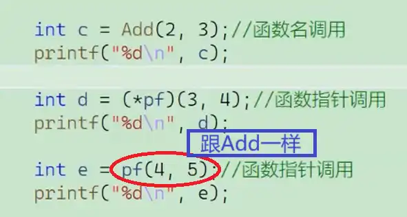 根据指针可以找到函数并调用函数,但是Add能直接调用,其实指针不用解引用也能够直接调用,*号可以不写或者写多个,这样也不会有问题,*就是个摆设