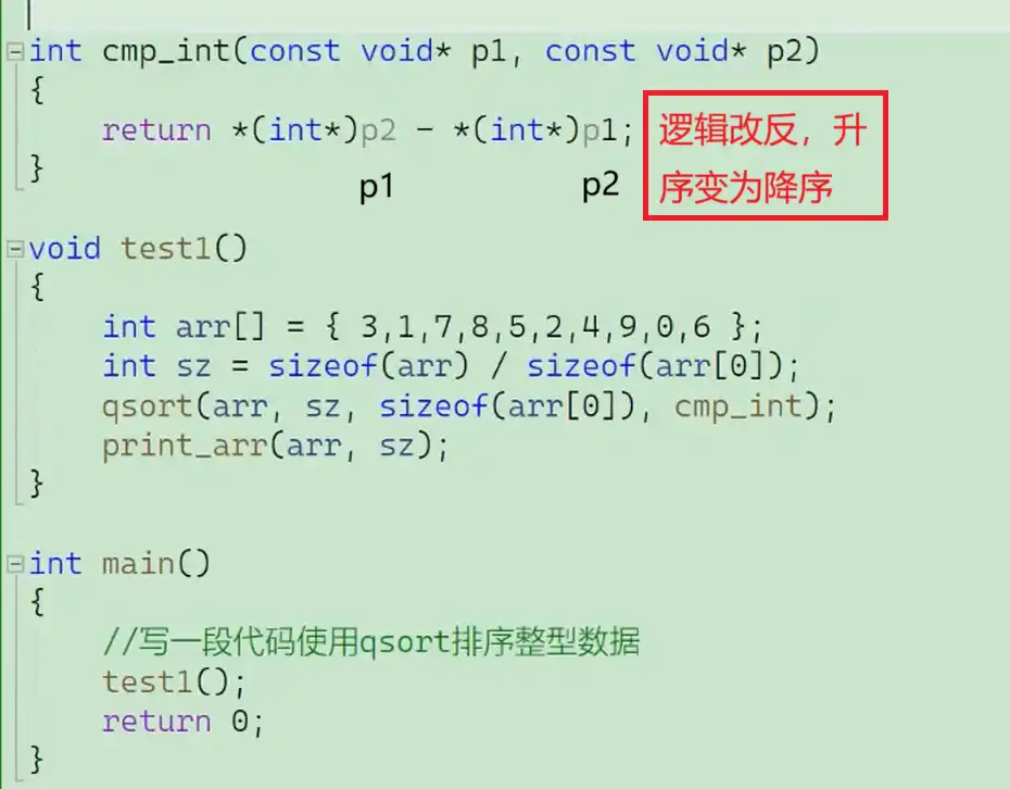 qsort()的使用者,明确知道要排序的是什么数据以及这些数据怎么比较,所以应由我们来提供比较函数void*类型的指针是无具体类型指针,也不能进行解引用(不知道访问几个整型)和指针加减运算
