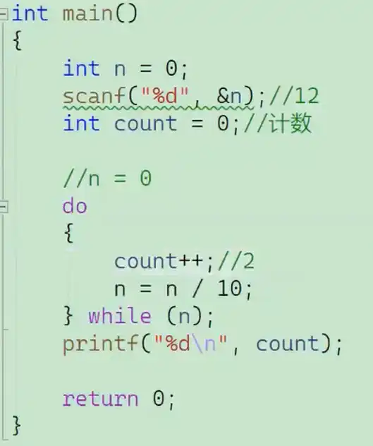 这里用do-while合适,当n=0时至少有一位(更全面)