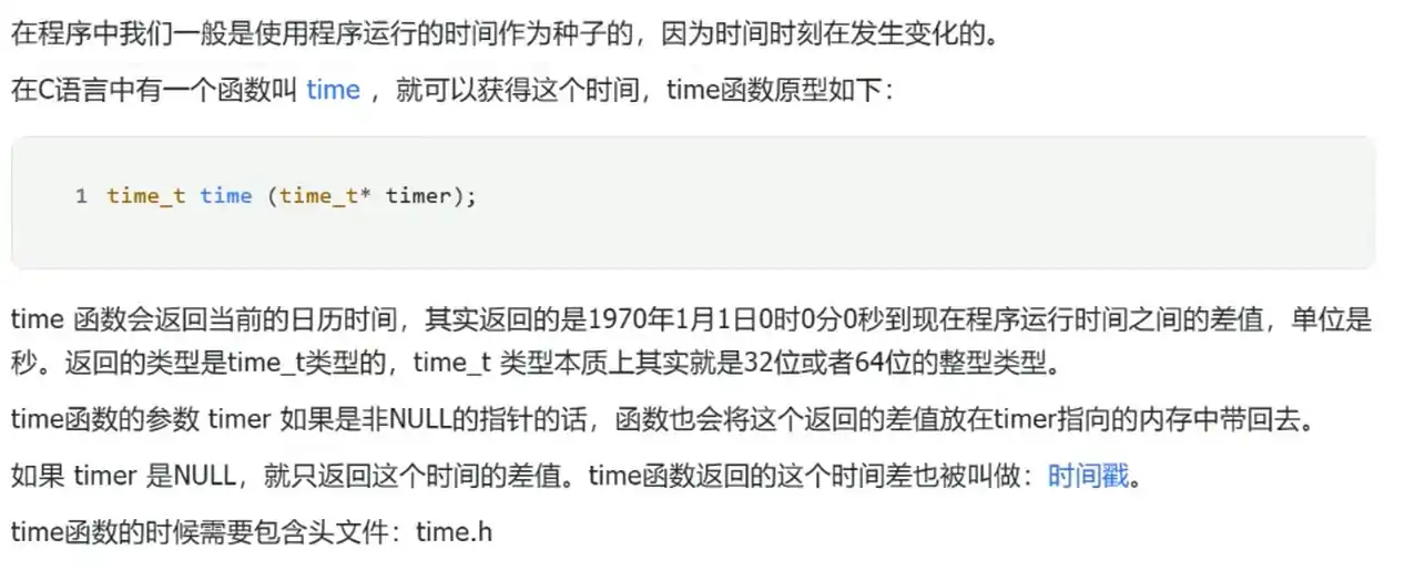 但是种子是随机数,随机数也是也需要种子,生成随机数需要随机数,这就矛盾了其实srand()的参数只要是变化的就行了,并不要求一定是随机数 time函数可以做到这一点