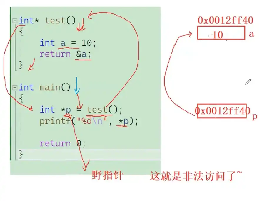 }野指针是什么? 野指针是指针指向的位置不可知的(随机、不正确的、没有明确限制的)