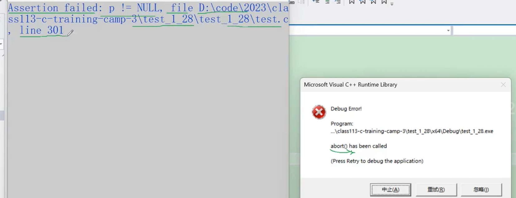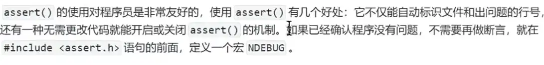 }assert.h头文件定义了宏assert,用于在程序运行时符合特定的条件,否则会报错终止运行,这个宏成为”断言“,为了避免野指针,可以用assert(p!=NULL),如果括号为假,会报错