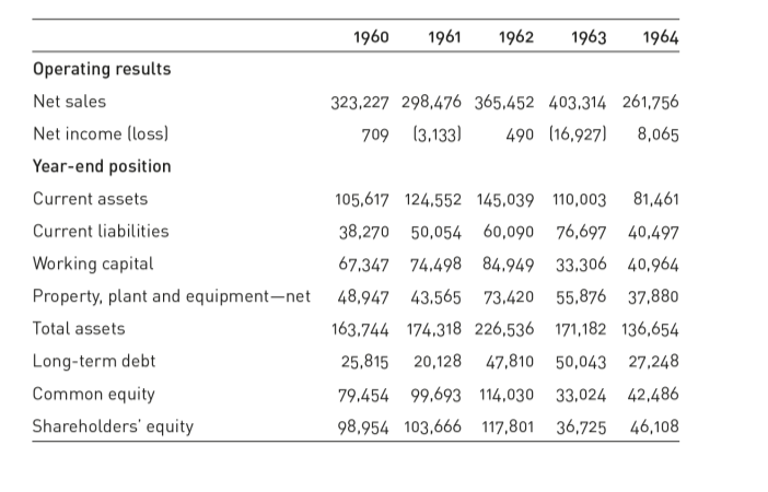 表1:斯图贝克公司五年财务摘要