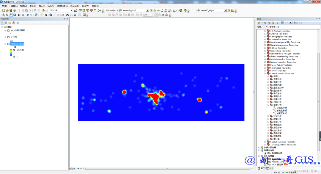本文讲解在ArcGIS中,基于长沙市酒店宾馆分布矢量点数据(POI数据)绘制酒店分布热力图。