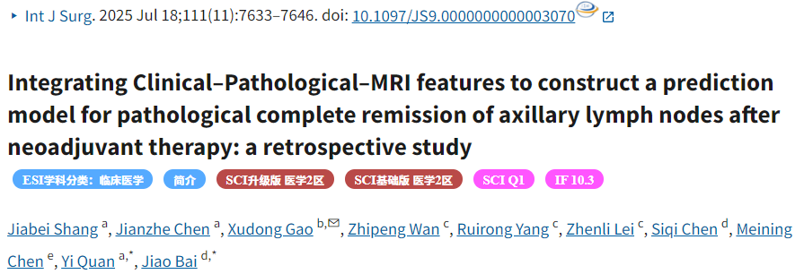 - 可视化工具:构建了列线图(Nomogram),使医生能通过简单的分值累加预测该患者是否可以省略腋窝淋巴结清扫。