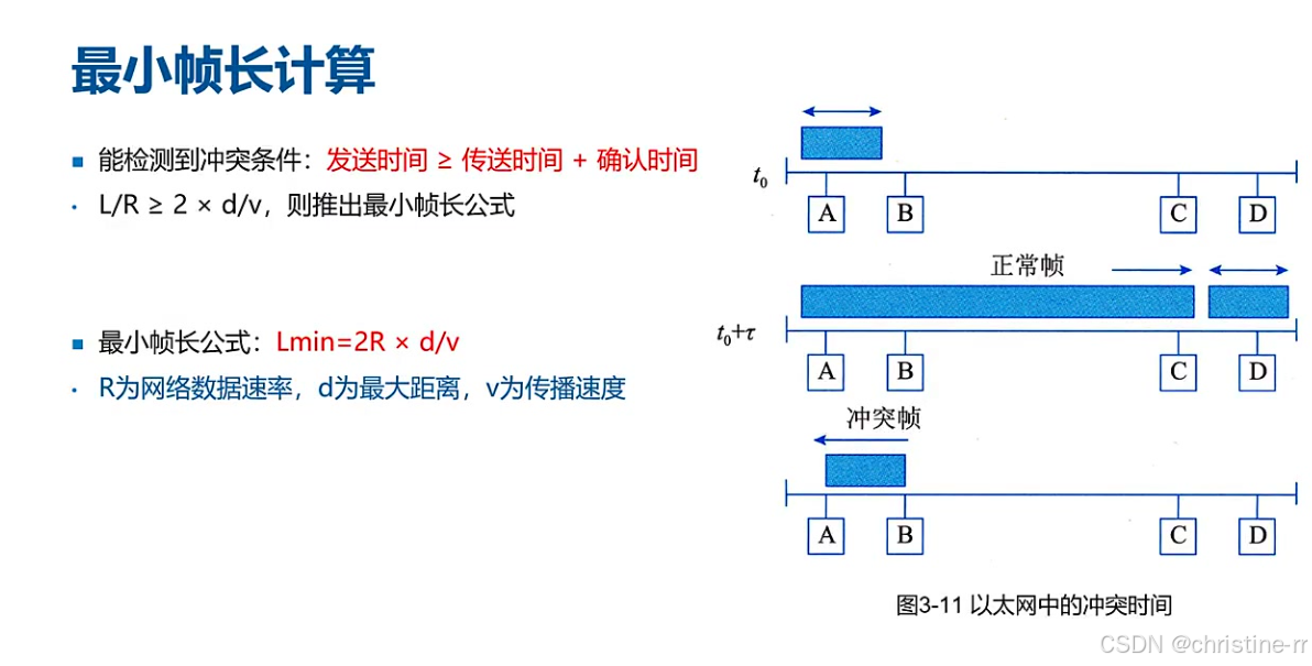 最小帧长公式:Lmin=2R×d/v 参数说明: