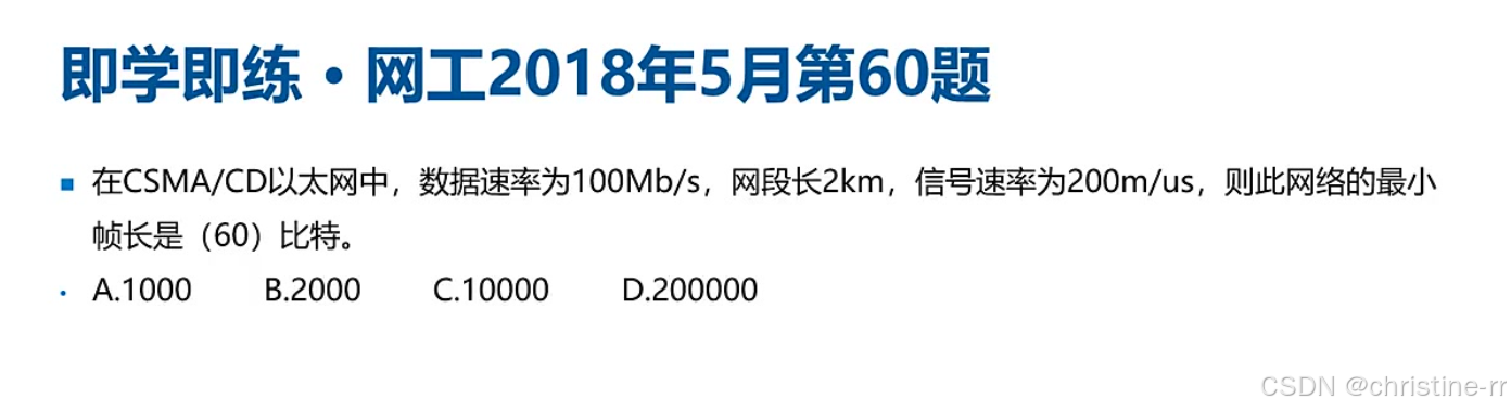 审题: 已知段长1000m,速率10Mbps,传播速度200m/μs(即2×10^8m/s)