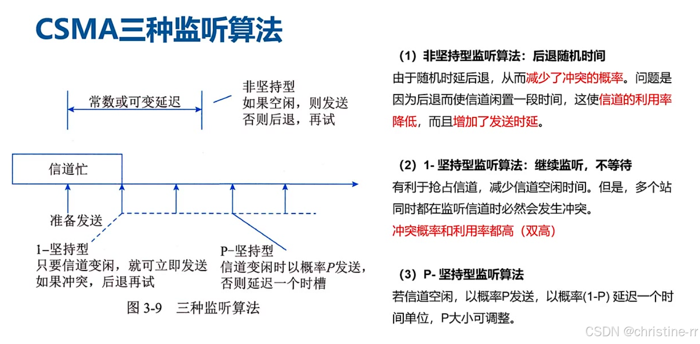 监听算法 | 一杠坚持型、非坚持型、p杠坚持型 | 三种监听算法的特点和区别 | 高 |