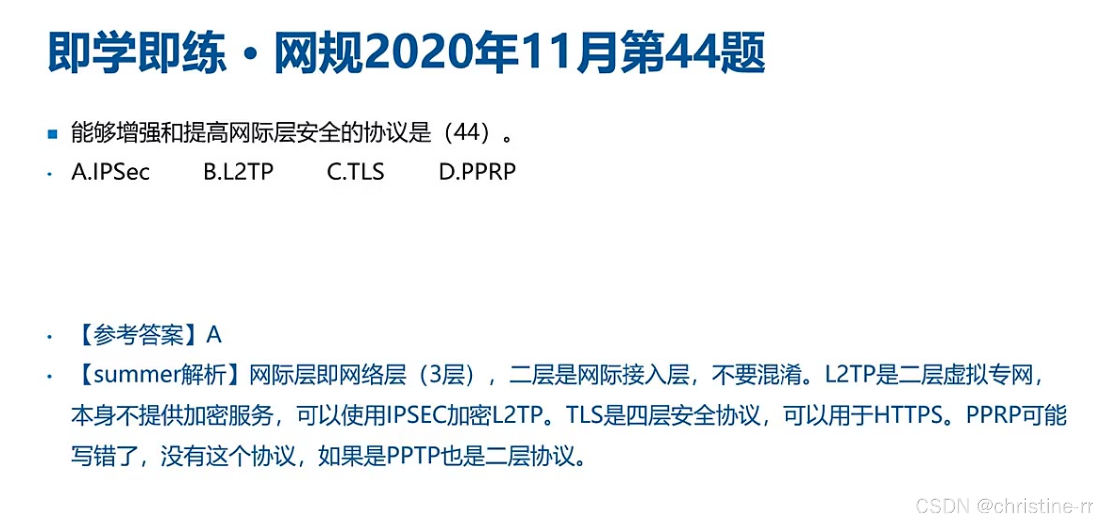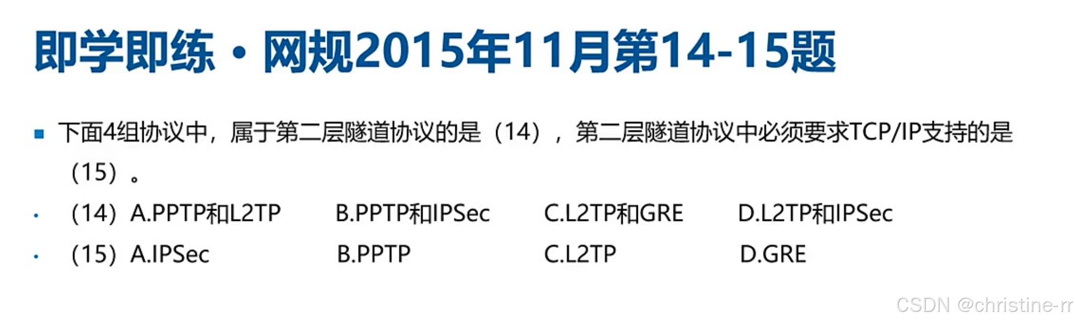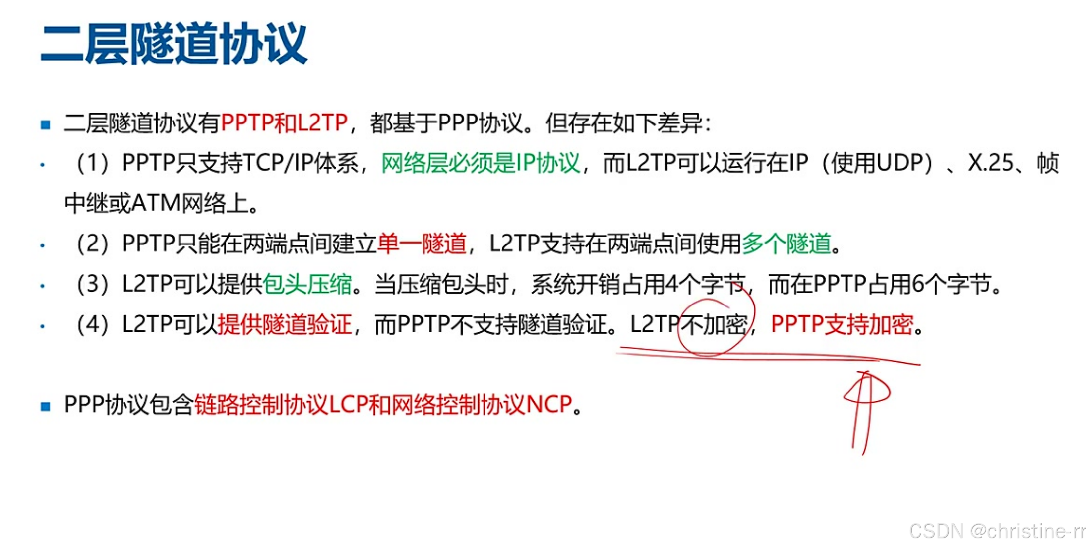 底层协议: PPTP和L2TP都基于PPP协议,这是选择题高频考点