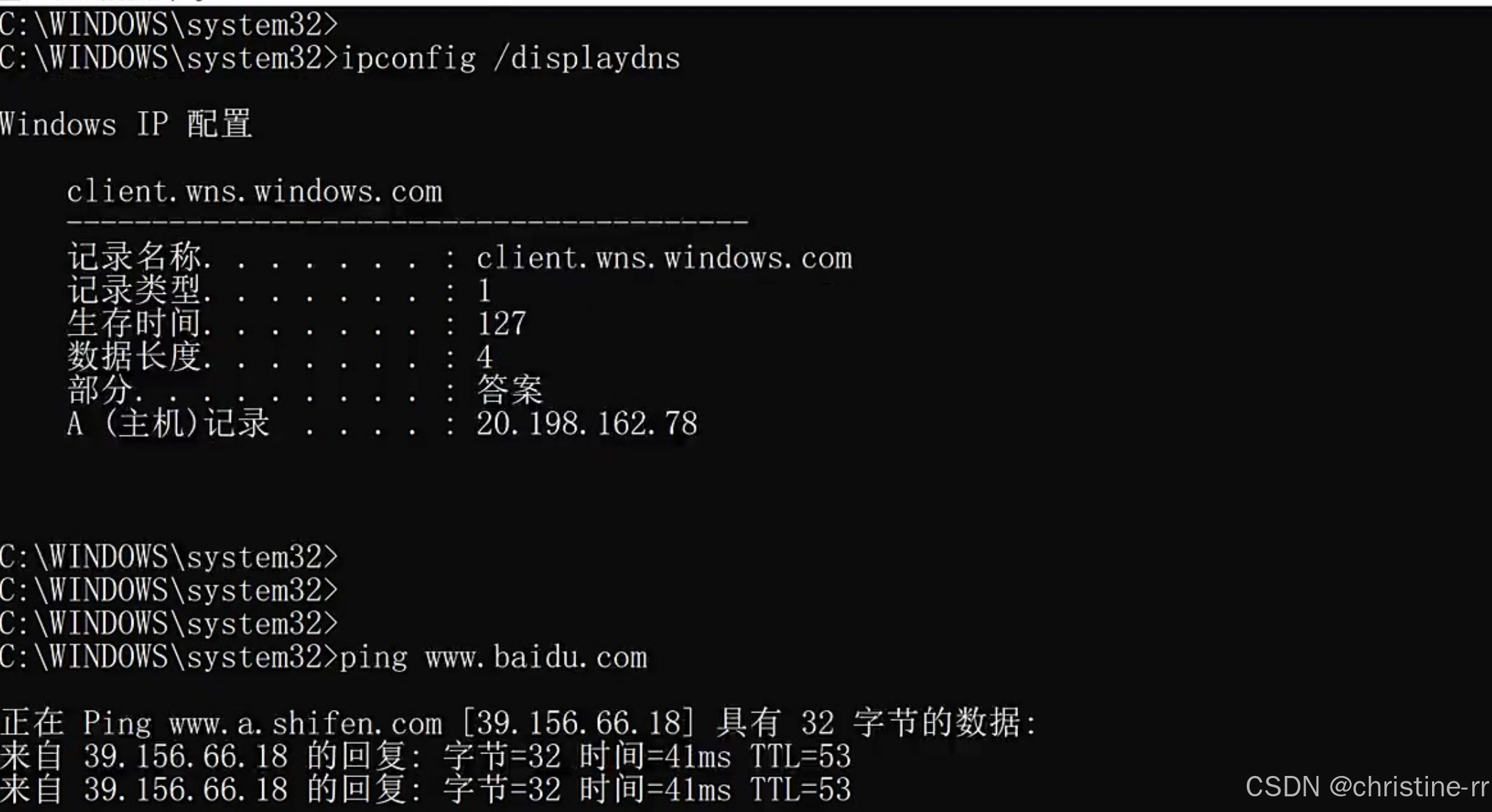 ipconfig display/flushdns | displaydns查看缓存,flushdns清空缓存 | 缓存刷新后仍有记录是因实时请求 | ⭐⭐ |
