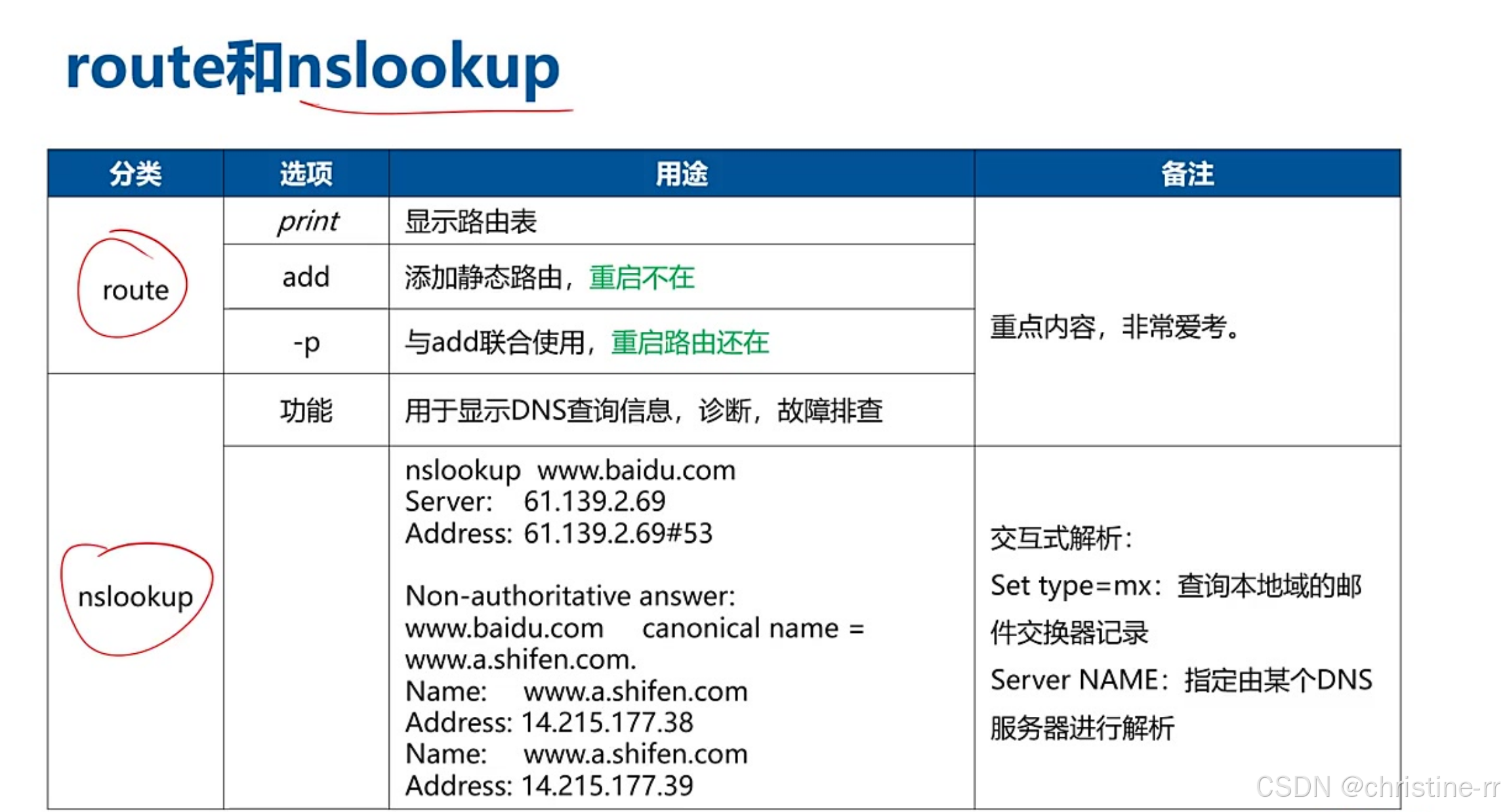 route | print显示路由表, add添加路由(-p永久生效) | 非-p添加的路由重启消失 | ⭐⭐⭐⭐ |