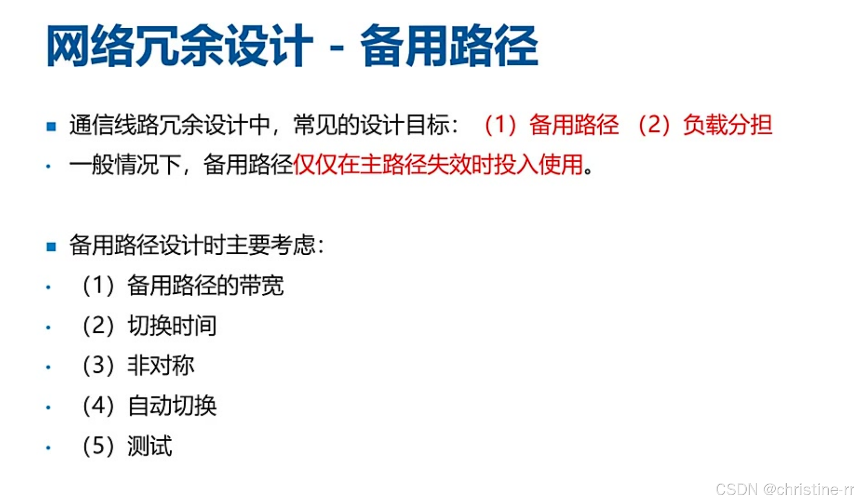 一般情况下,备用路径仅在主路径失效时投入使用
