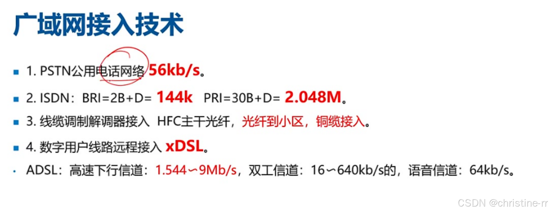 广域网接入技术历史 | 最早依赖PSTN,后发展至ISDN、HFC、xDSL等 | PSTN、ISDN、HFC、xDSL的演进历程 | 🌟 |