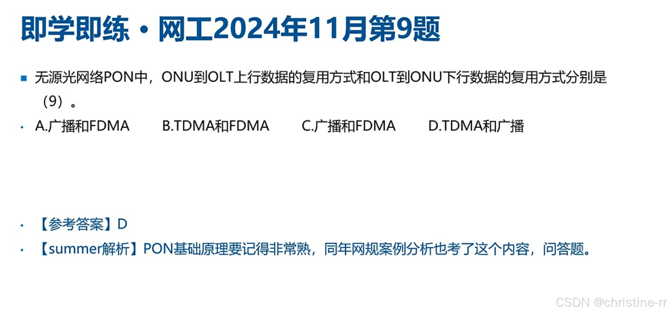 PON的上下行技术 | 下行广播,上行TDMA | PON的上下行信号复用方式 | 🌟🌟🌟🌟 |