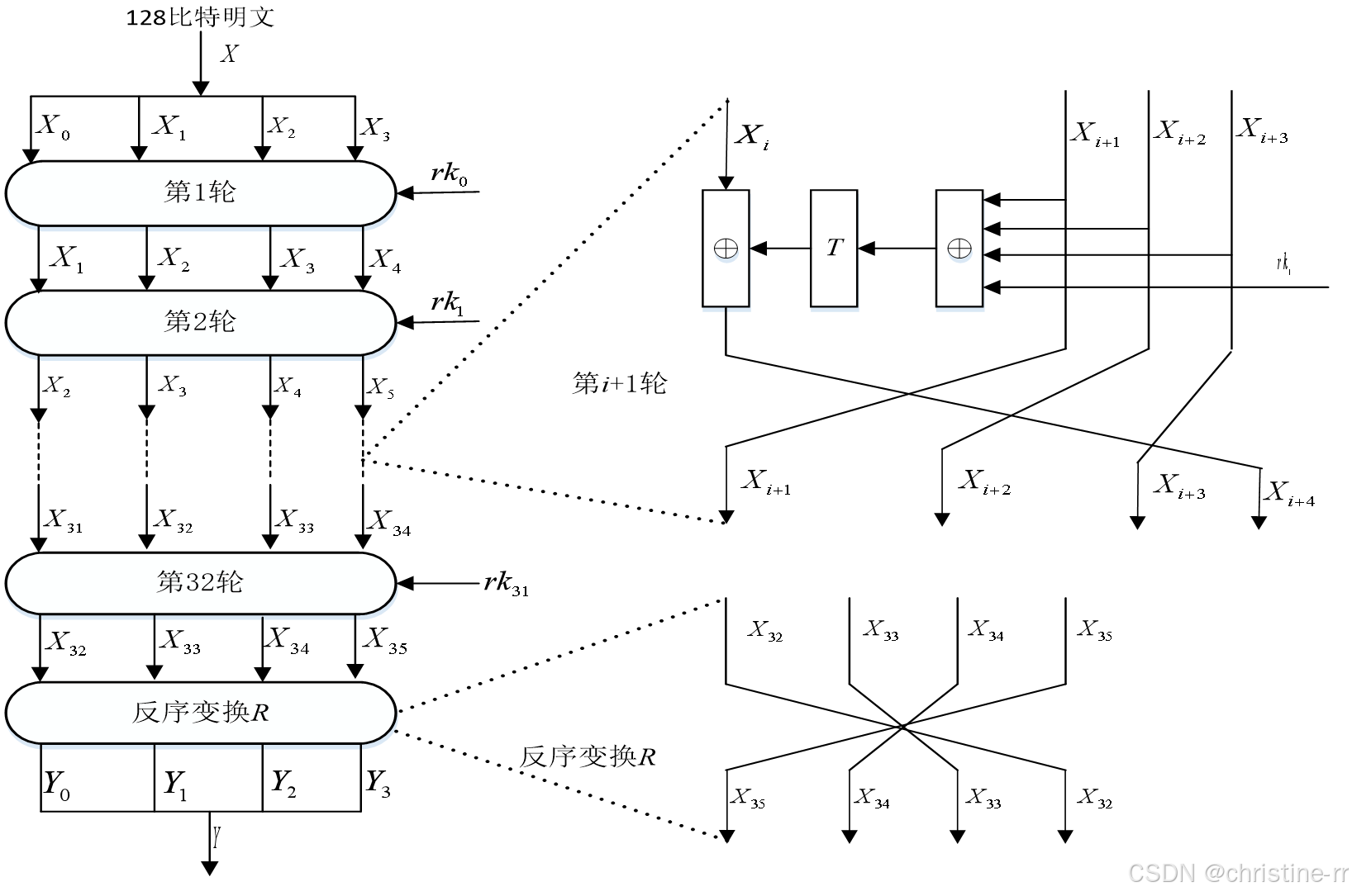 SM4算法的加密算法和轮函数结构图