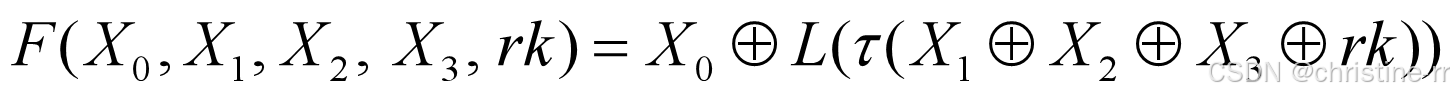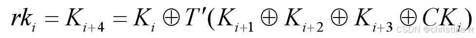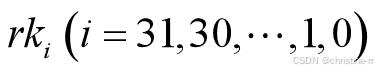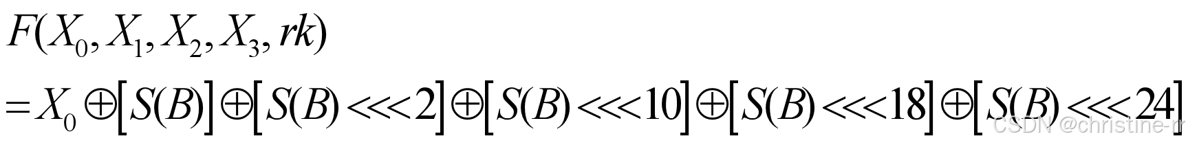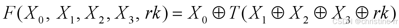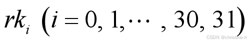 共128位,轮密钥为一个32位的字 。输出也是一个32位的字,由下式给出: