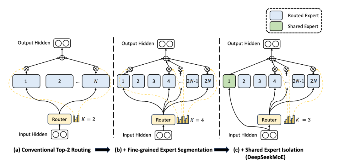 小结:deepseek的MoE系统为了达到“专人专事”的效果,将专家拆分的更多,同时激活的更多。