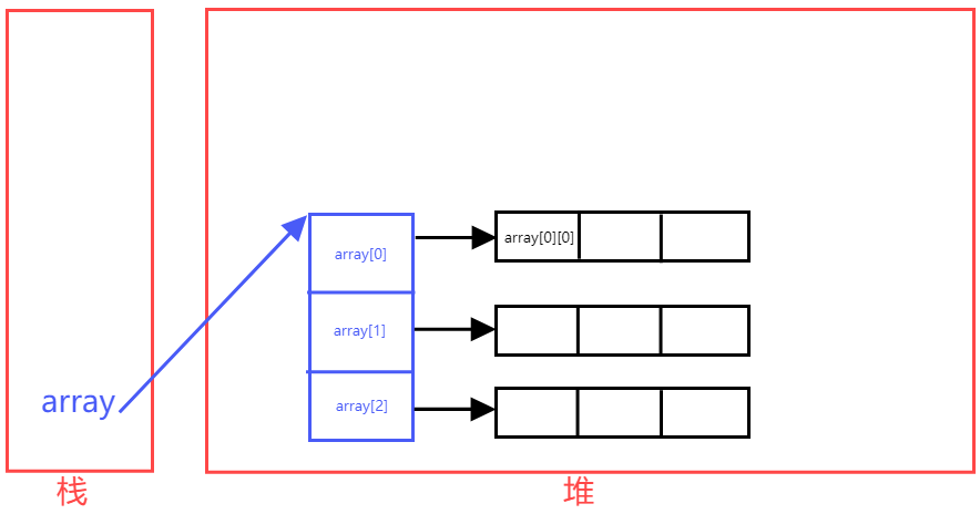 array[1] = new int[5];上述⼆维数组就不是⼀个规则的二维数组,第一行有三列,第二行有五列