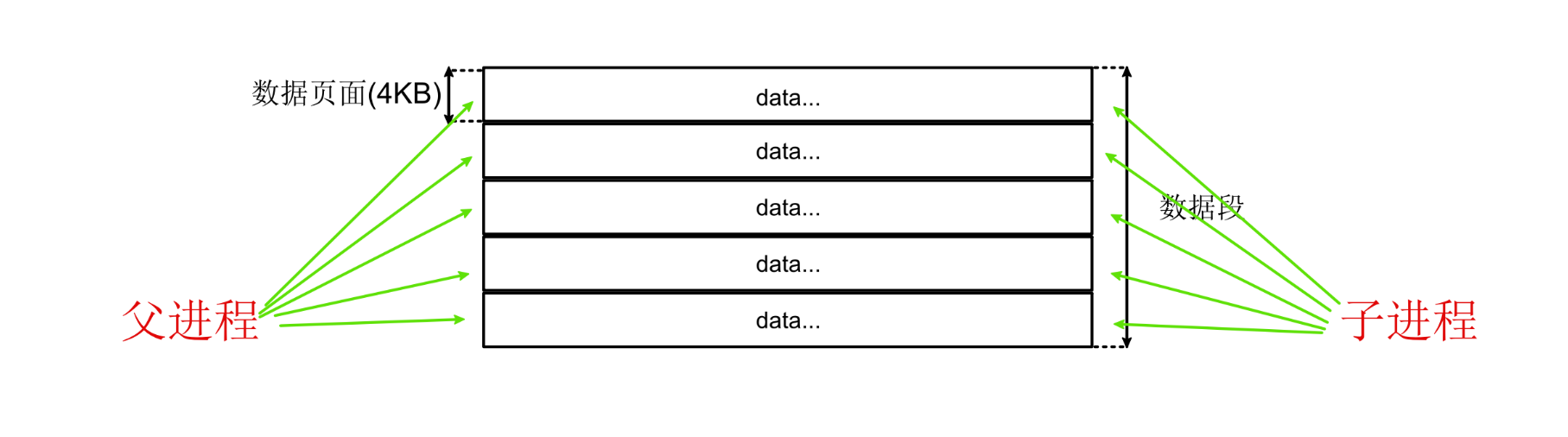 当父进程对数据段中的某一数据页面进行修改操作时,Linux操作系统会将该数据页面复制一份分离出来,然后对该页面进行修改,最后父进程指向指向修改后的页面。随着被修改的页面越来越多,内存空间不断膨胀,最多达到原来的两倍