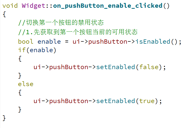 objectName分别为pushButton(目标按钮)和pushButton_enable(切换按钮);