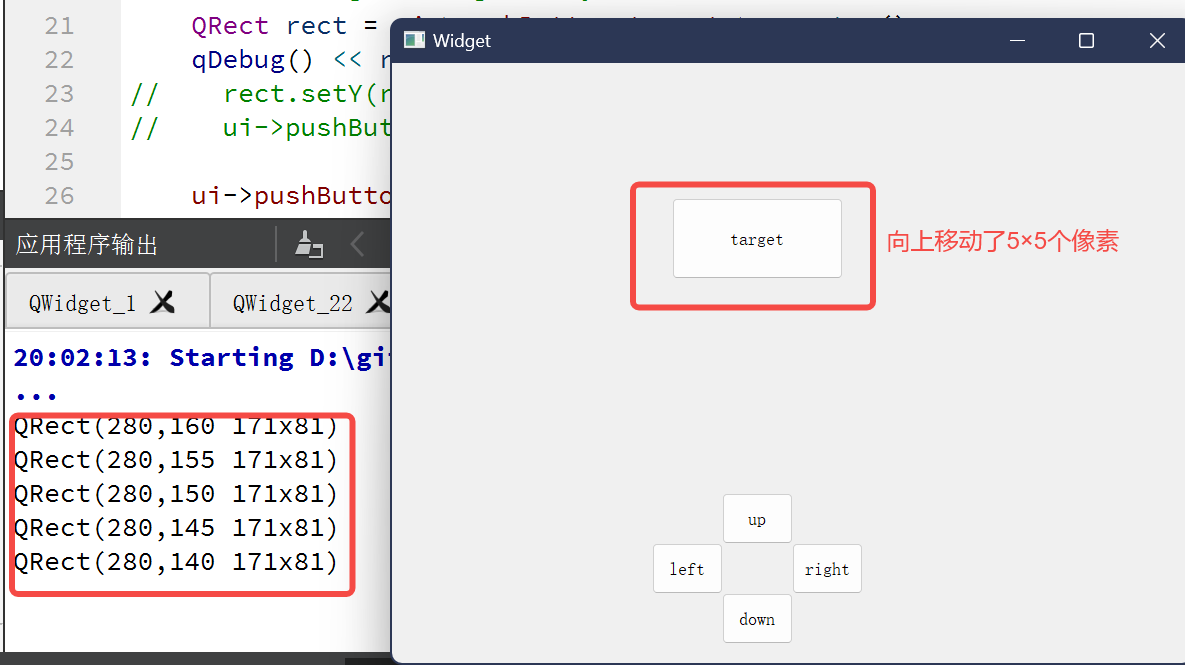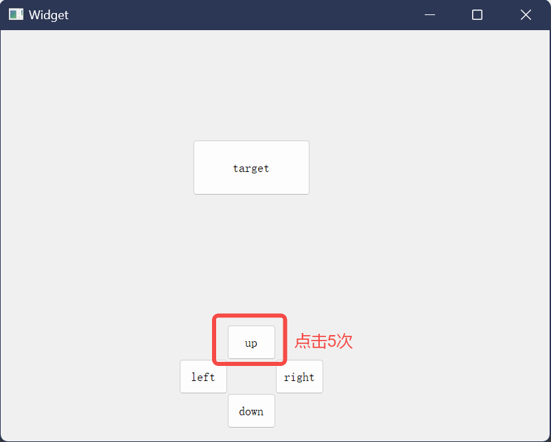 }运行程序后,点击方向按钮,目标按钮就会以 5 个像素为步长移动。